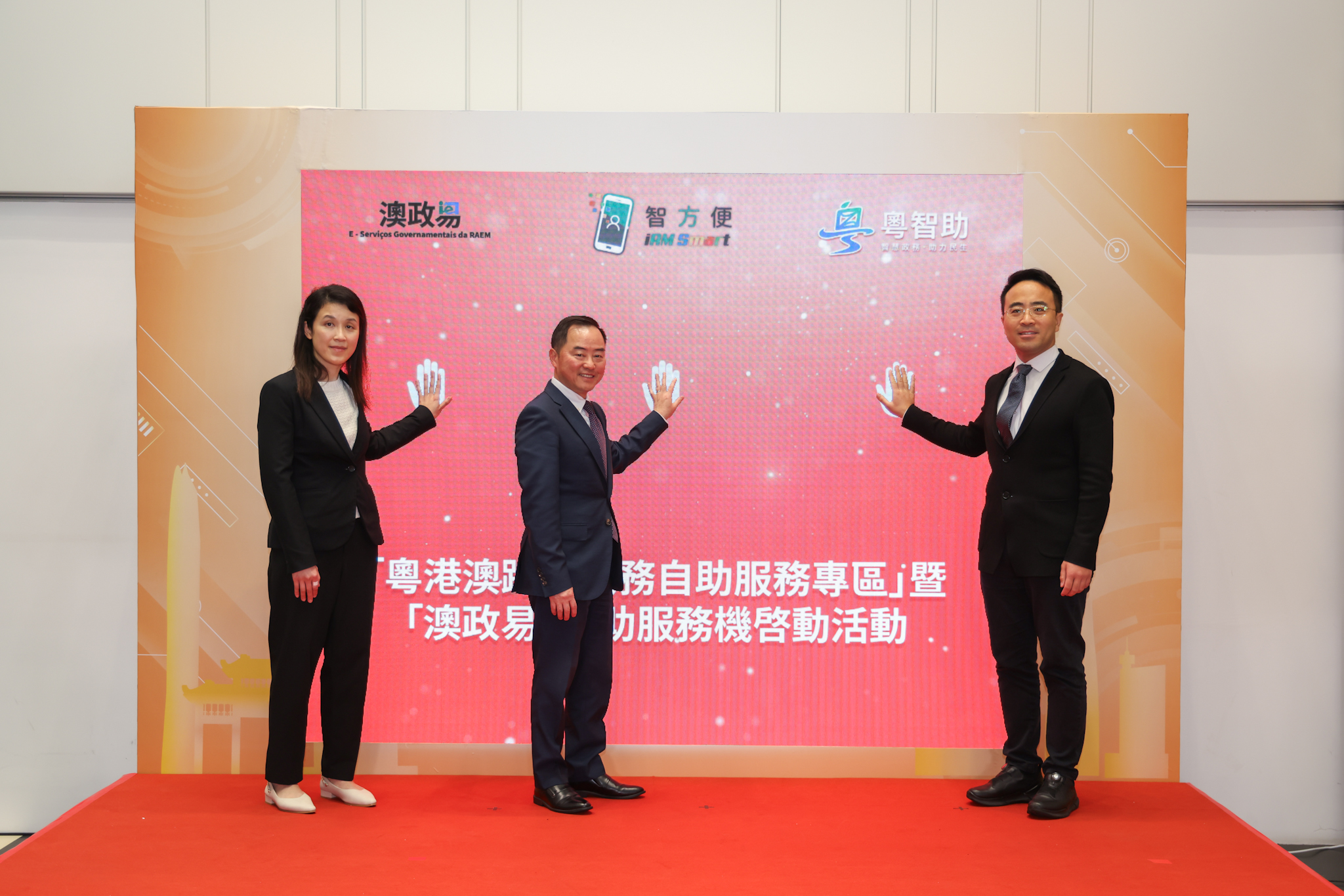 “粵港澳跨境政務自助服務專區”暨“澳政易”自助服務機啓動儀式主禮嘉賓合照