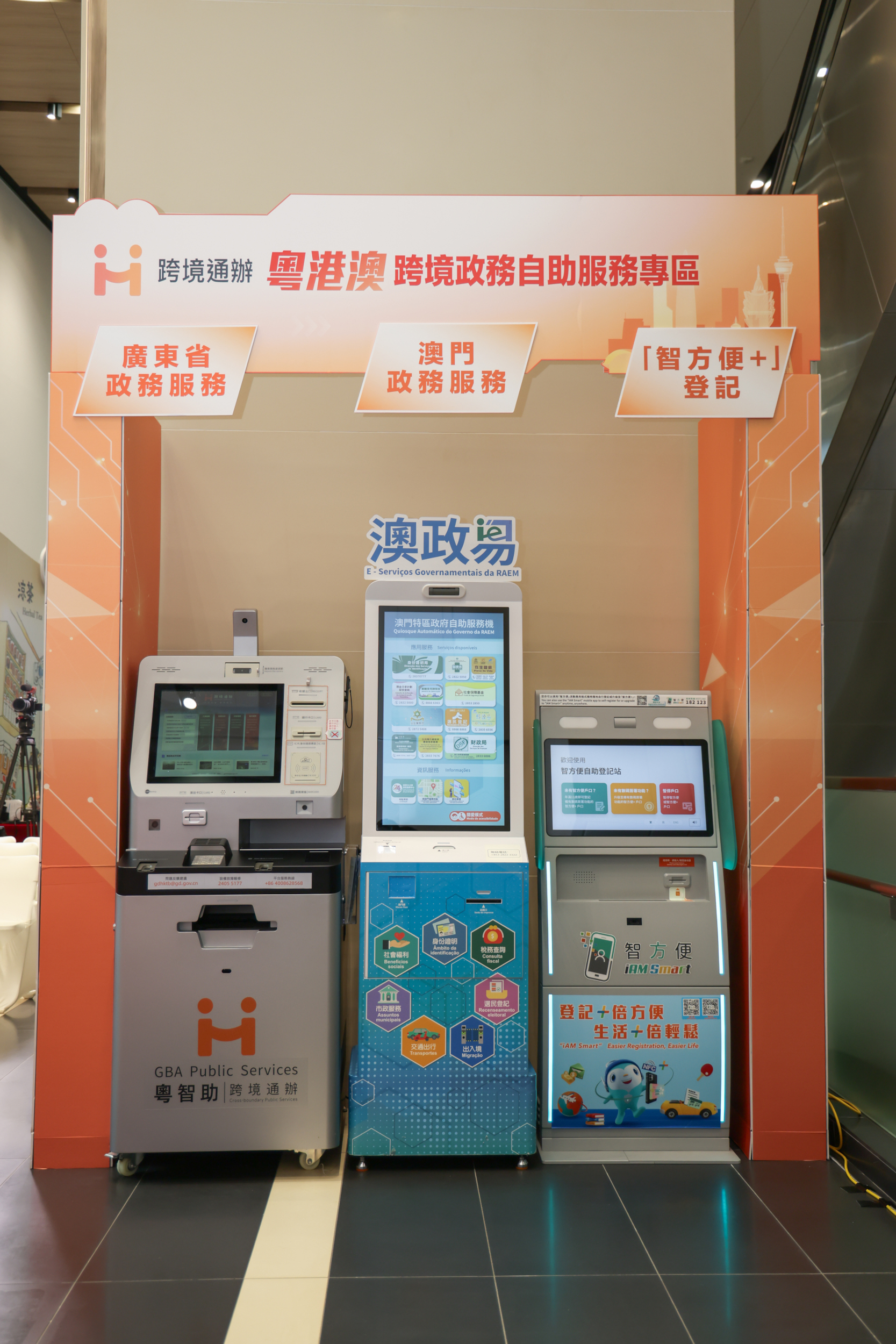“粵港澳跨境政務自助服務專區”設有粵港澳三地的自助服務機