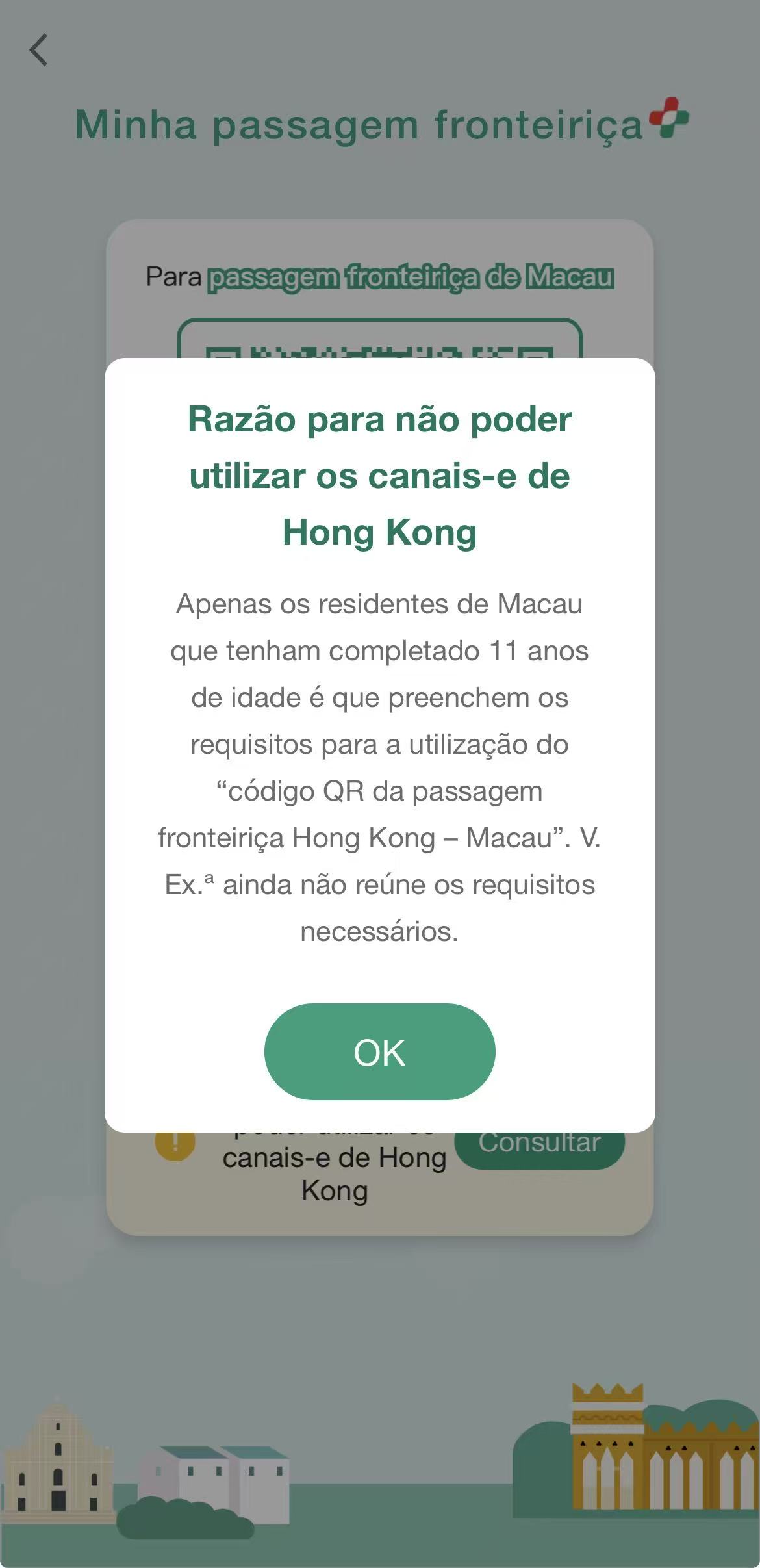 O “código QR da passagem fronteiriça Hong Kong – Macau” não pode ser utilizado nas seguintes situações. Os residentes podem clicar em “consultar” para saber a causa.